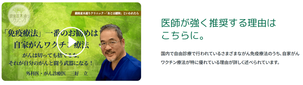 その動画では、「国内で自由診療で行われているさまざまながん免疫療法のうち、自家がんワクチン療法が特に優れている理由」が詳しく述べられています。